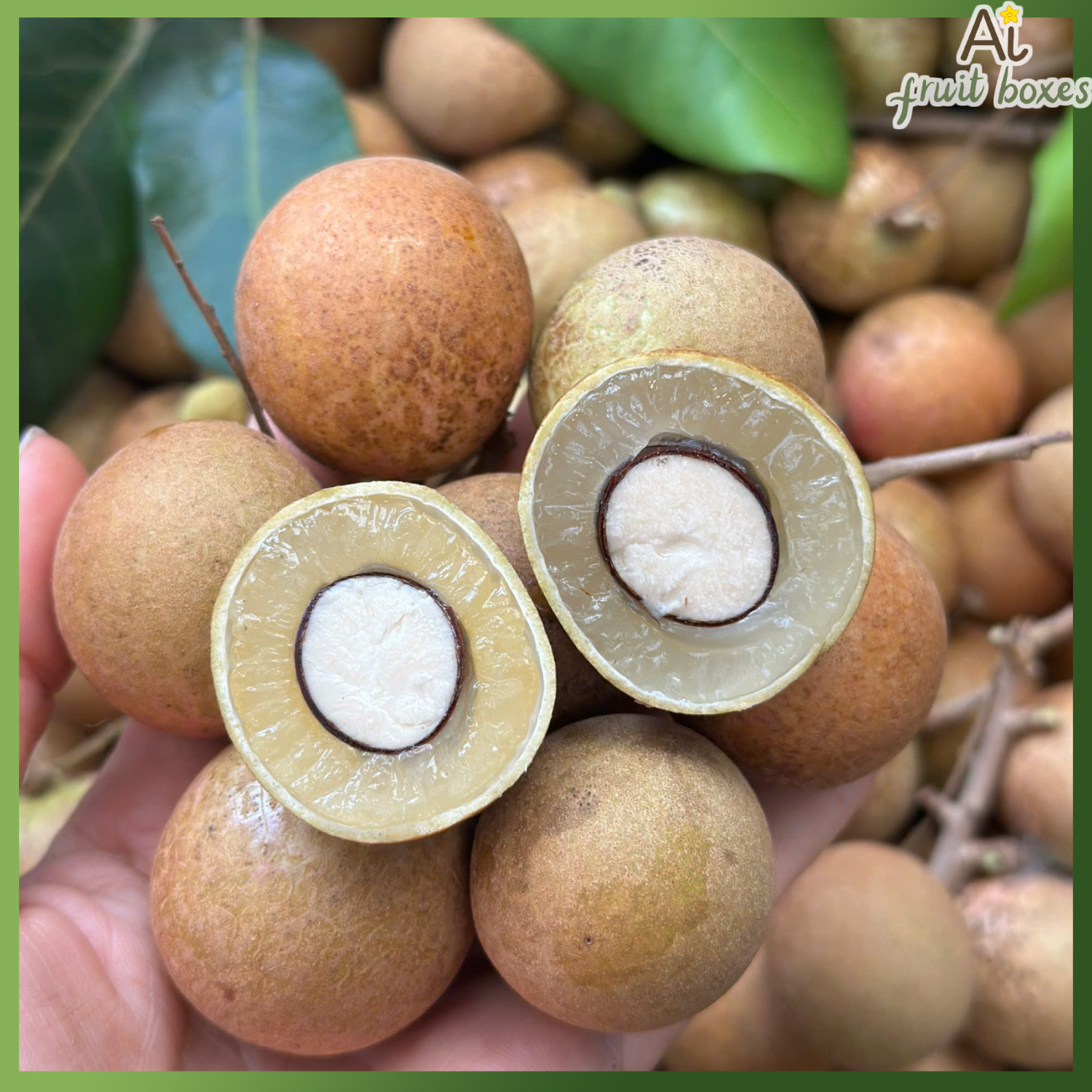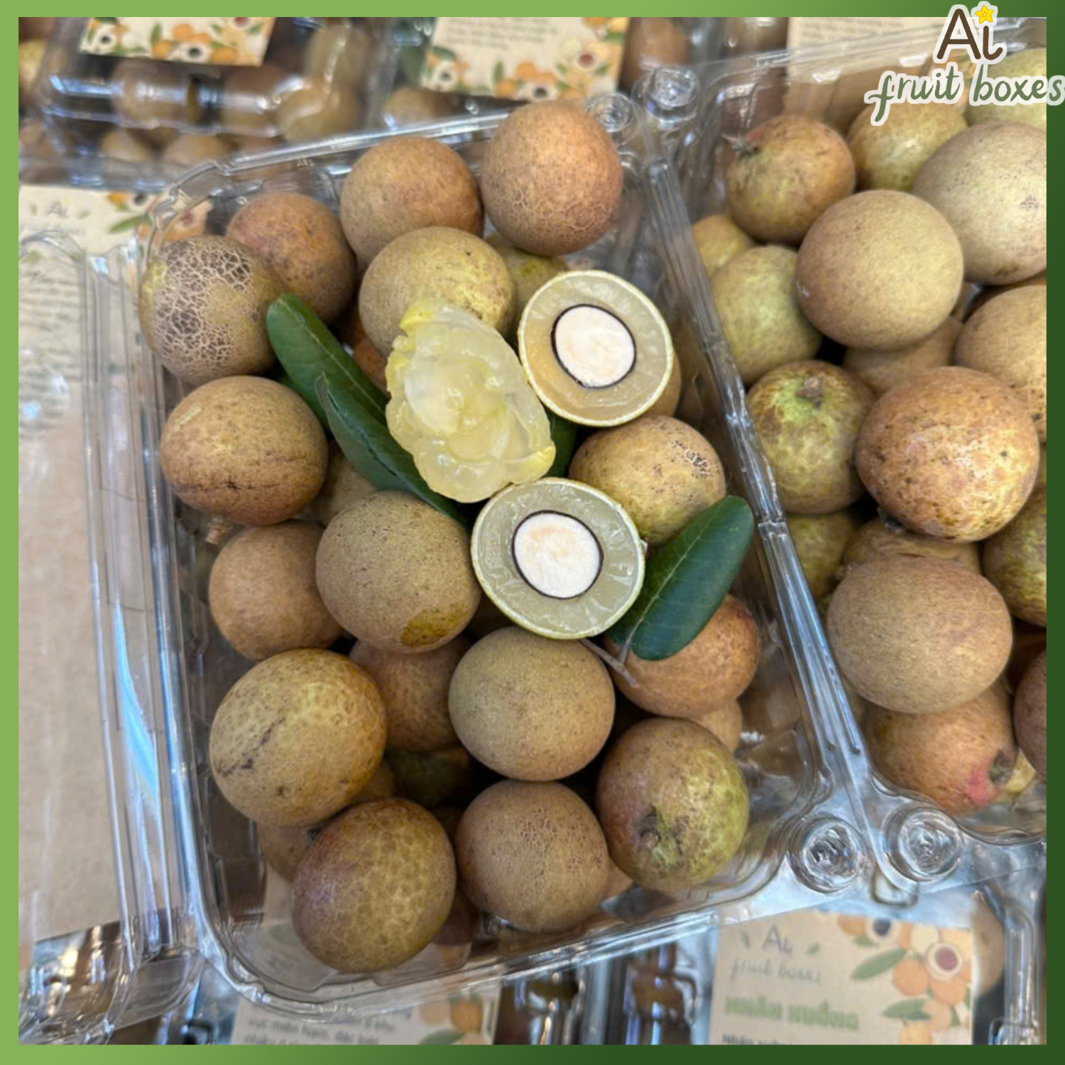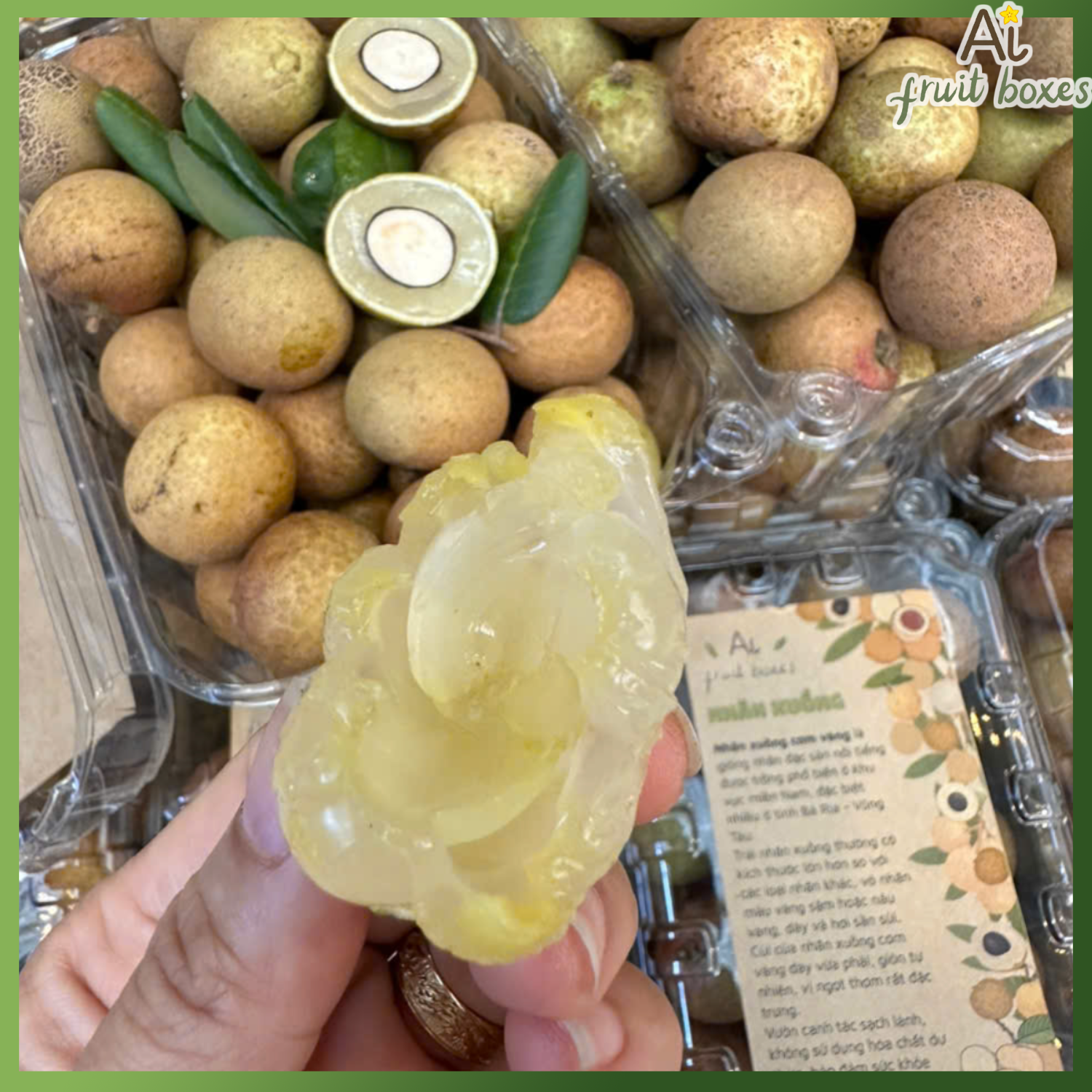 Cùi của nhãn xuồng cơm vàng dày vừa phải, giòn tự nhiên, vị ngọt thơm rất đặc trưng.